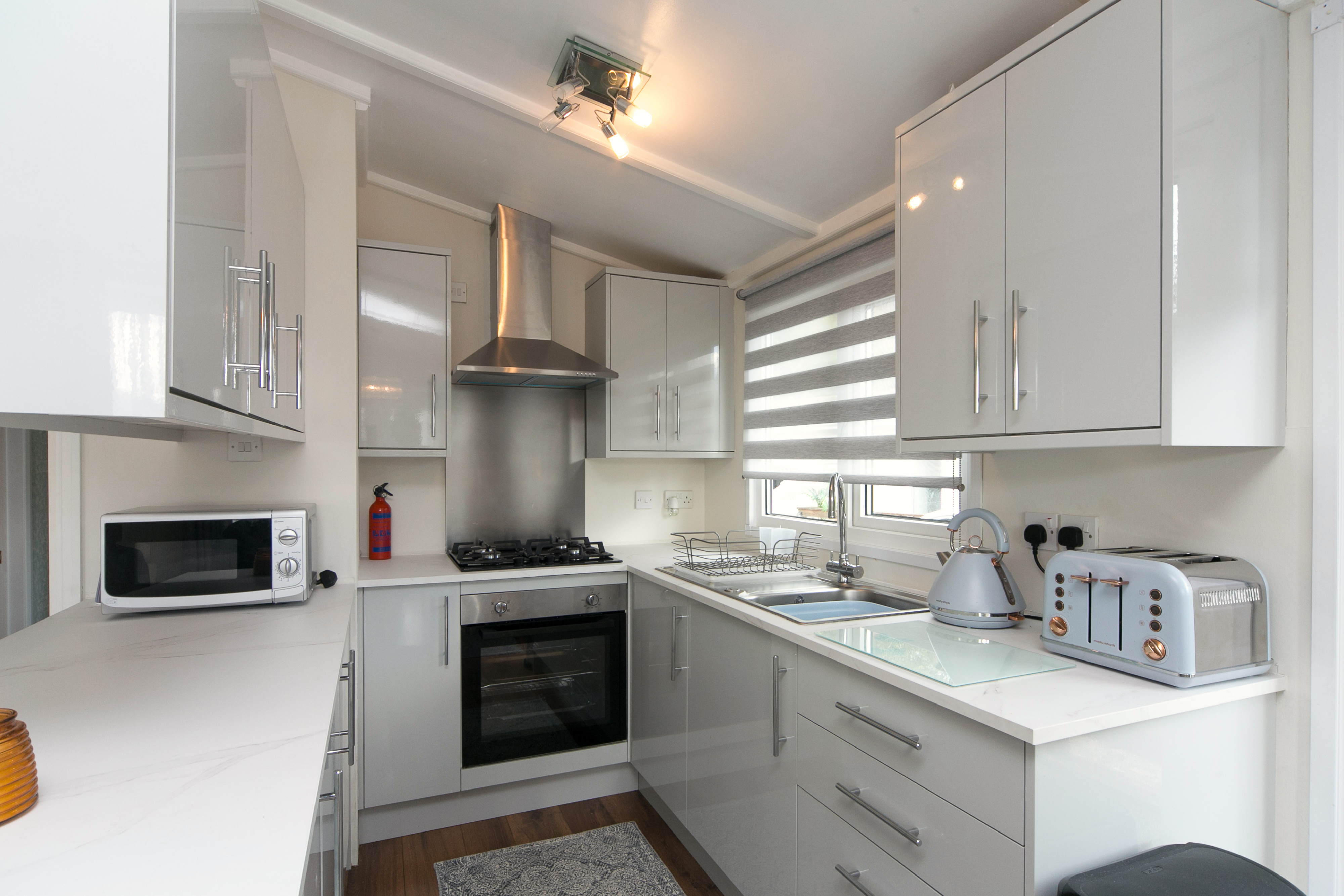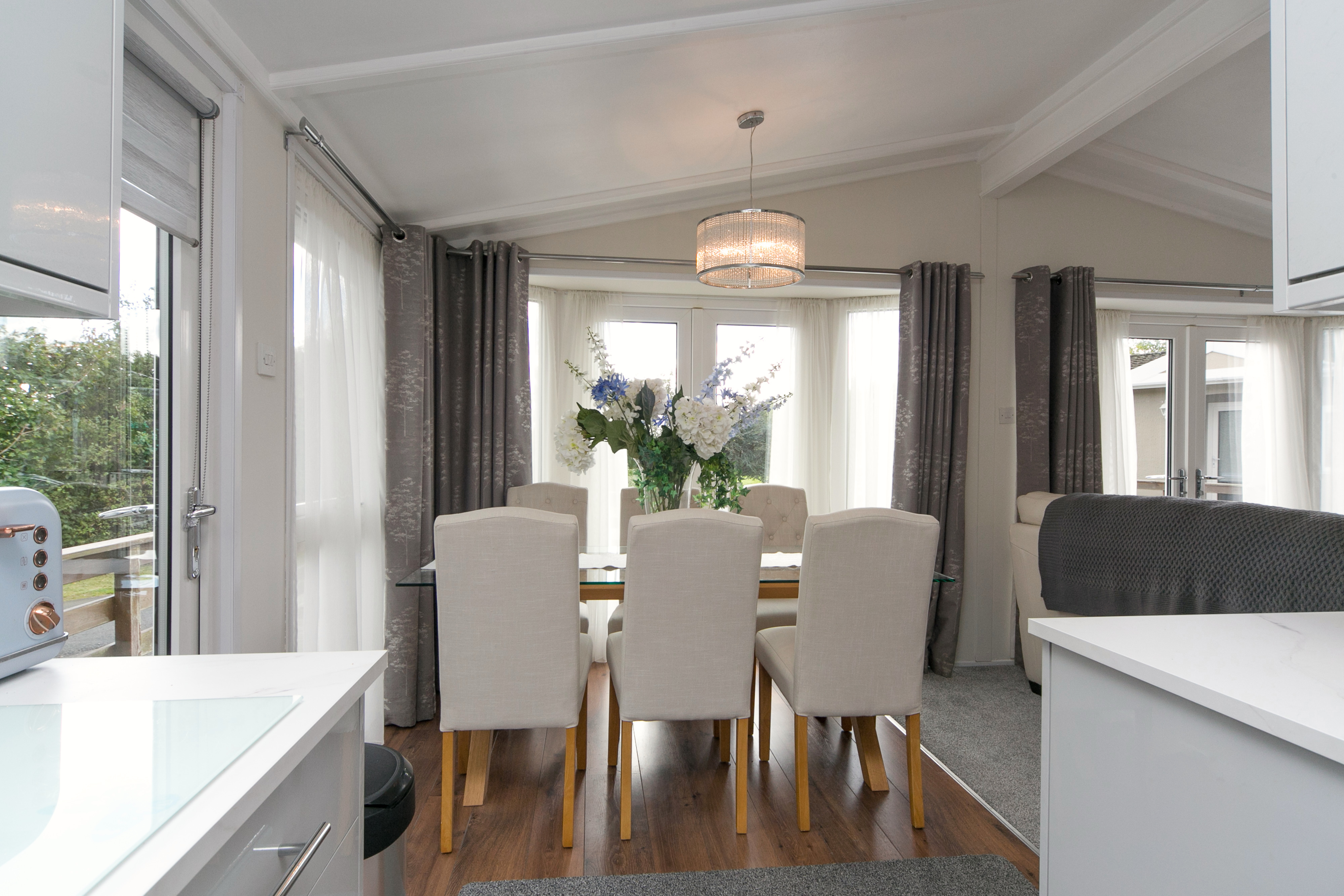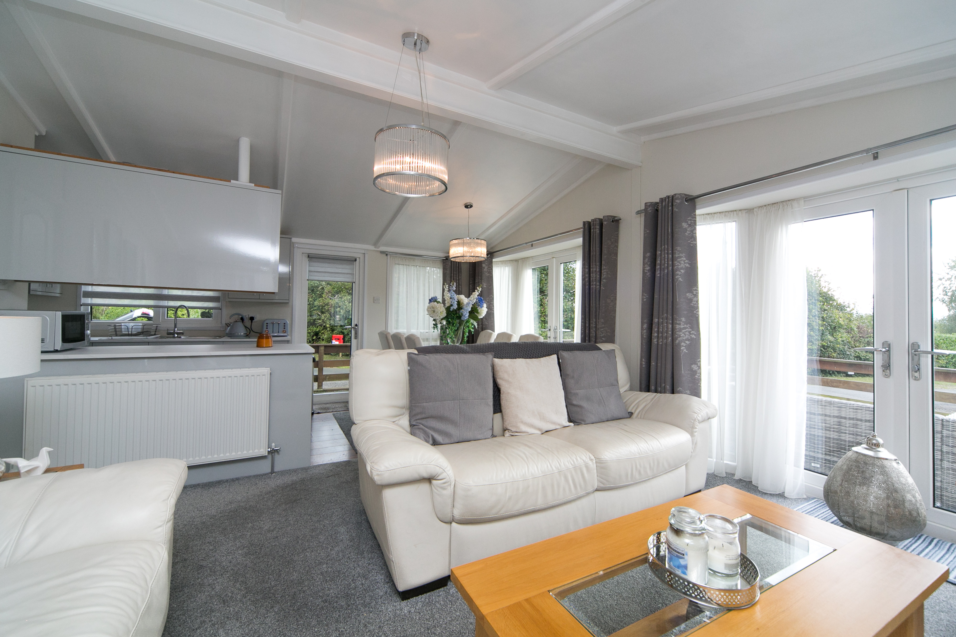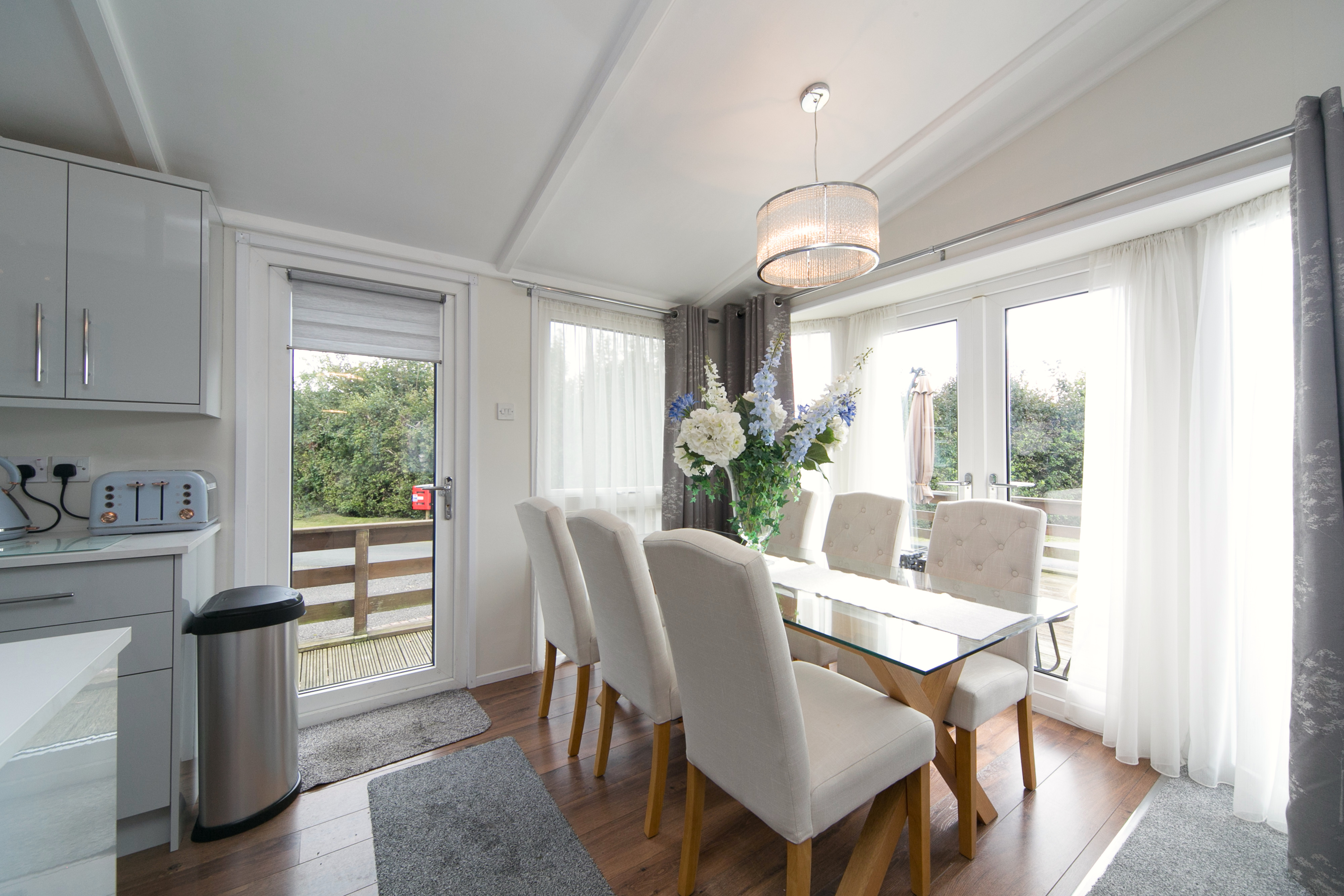 The Cosalt Mattise with its well equipped with its ‘U’ shape kitchen, and open plan living and dining area. The lounge and dining furniture is all free standing allowing for personal touches to be added to this lodge. When you walk through the front door of the Cosalt Mattise you are instantly drawn to the sheer amount of natural light that enters through the double front opening doors.
